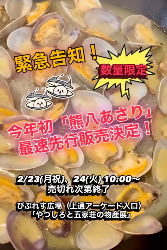 熊八あさりECサイトでの事前予約注文を開始しました。(店舗受け取りのみ)